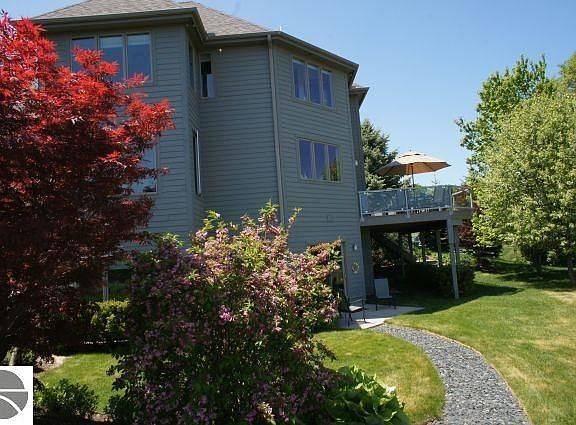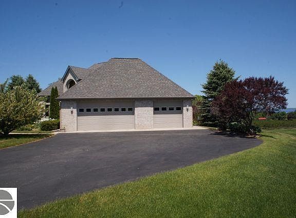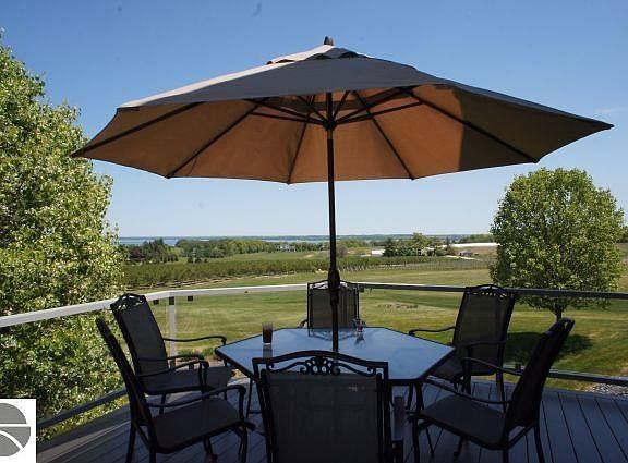 Premier Underwood Farms on Old Mission Peninsula introduces a spectacular 3,500+sqft architectural delight! A palette of sunlight, beginning at daybreak to the last ray of sun in the evening, filters through the glass and bounces off high ceilings and walls. The main level boasts 2-story foyer, living room, dining areas with expansive windows to views. The family room off the kitchen and breakfast nook - opened in the recent kitchen remodel - leads to a deck overlooking rolling hills, vineyards, orchards and 180 degree bay view, expanding the space for entertaining outside. The main level suite is masterfully appointed down to the private deck. The upper level Jack and Jill suite incorporates function along with pampering. A walk-out lower level provides kick-back space from the family room to the artist's studio and a handy-man's workshop. A 3car garage, 1.1 acres, perennial gardens carefully placed for your exterior enjoyment, and shared bay frontage - This is truly a rare find!