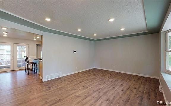 Nicely updated ranch home on a 1/3 acre in Arvada! Close to Little Dry Creek Park, Lake Arbor, trails, shopping, restaurants, and much more! Both exterior and interior have been freshly painted. As you walk in the home you will notice the new laminate flooring, newer windows through out, and will see how much work was put into preparing this home for sale. It is move in ready! The kitchen has gorgeous granite counter tops and stainless steel appliances. There are plenty of bedrooms, and the bathrooms have been tastefully updated. New furnace and A/C as well. The basement is about 75\% finished, and is a great spot to host parties with the open entertainment room and wet bar. The back yard is huge and has many opportunities for gardening, playing, or just enjoying not being so close to your neighbors. Come by and see this nicely updated home in a very convenient location in Arvada!