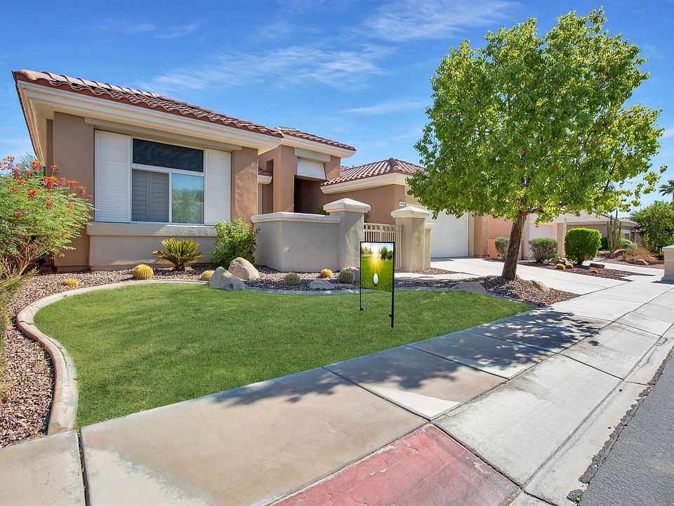 1 year lease Unfurnished, Tangier Model 2/2 +den with built-in desk is move-in ready. 55+ gated community. In the new section of Sun City Palm Desert and walking distance to the Lakeview Clubhouse with pool & fitness center. Upgrade kitchen has granite countertops and stainless appliances. Plantation shutters throughout. Carpet and tile flooring are all in light neutral desert tones making this home perfect to go with your deco. Large private backyard is beautifully landscaped and excellent for entertaining. Includes a golf cart, cable TV & Wifi. Sun City has 2-18 hole golf courses, miniature golf, fishing pond, tennis, pickle ball, fitness centers, restaurants, clubhouses with ample clubs and amenities.