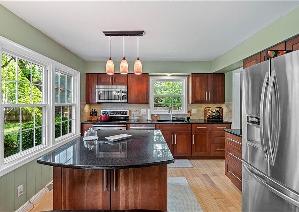 Wonderful 4 bedroom, 2 bath side to side split in Greystone Estates! The kitchen is incredible with a large sit at island, custom cabinets with large pull out drawers, and a convenient coffee bar. Home has newer HVAC and Water Heater! Main floor has living room, dining area, and kitchen with awesome bamboo wood flooring. Master Bath and Bedroom remodeled recently which includes heated tile floor in bathroom, large walk-in shower and european style heated towel rack. Has a Radon mitigation system already installed. Home sits on a lovely corner lot with a newer super large concrete stamped patio area in a large fenced beautiful treed walk out backyard. Don't miss the large fenced garden space, 2 peach trees, 2 apple trees and multiple blackberry bushes. Patio is wired to add a hot tub. Vinyl siding and thermal windows make the exterior virtually maintenance free! . Check out the list in supplements of all the improvements that have been done to this home. HOA includes a pool which is only two blocks away. Great quiet neighborhood with everything you need very close by. Sellers desired closing date is 8/3/2023 or after!