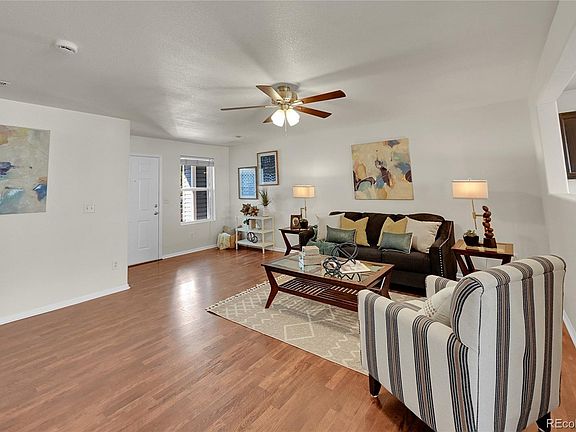 Welcome home to this two bedroom, two bathroom townhome located in Southcreek! Upon entering, you will be greeted by a bright and airy floorplan with fresh paint throughout. The living room offers beautifully finished hardwood flooring, ample amounts of natural lighting and a ceiling fan. The gourmet kitchen is perfect for cooking homemade meals and offers tile flooring, spacious countertops and ample amounts of cabinetry for any additional storage needs you may have. Enjoy the easy access to anywhere in the home, the perfect layout for entertaining! Plus, all kitchen appliances are included with the home... talk about move in ready! You will also find in-unit laundry right off of the kitchen, conveniently located and ready to tackle any mess that may come your way. Head upstairs where you will be greeted by the primary bedroom. This space features plush carpet flooring, fresh paint, a large window allowing light to shine in and a ceiling fan. Plenty of space for any furniture design layout you can imagine and easy access to the private en-suite bathroom and spacious closet. A second bedroom and a full bathroom complete the main level, how perfect! Bask in the warm Colorado weather on your front patio or back porch, both allowing easy access to anywhere in the home, great for hosting gatherings with friends and family! Enjoy the amenities Southcreek has to offer including a playground and trails, all within walking distance! Residents of Southcreek have access to the award winning Cherry Creek School District to include Grandview High School. You will love the easy access to just about anywhere including I-25, E-470, Denver Technology Center, Downtown Denver and Denver International Airport! Cornerstar Shopping Center is just a quick drive away and offers ample amounts of shopping, dining and entertainment options including Cheddar's Scratch Kitchen, Real De Minas Mexican, Target, AMC Arapahoe Crossing and Celebrity Lanes Bowling. You don't want to miss out on this!