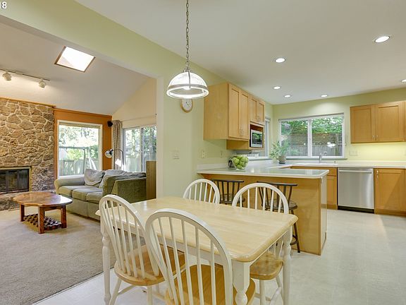 Beautiful home in the coveted Kingsgate community! Enjoy the light and bright updated kitchen with refrigerator included, airy vaulted living room, gorgeous stone fireplace in the family room, and warm cozy tones throughout. Outside amenities include cedar siding, decking & hot tub. Just behind Bridgeport Village with all it has to offer & next to Tualatin Park/Cook Park!