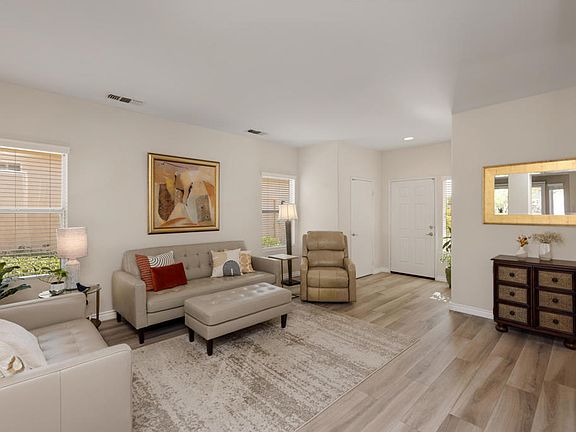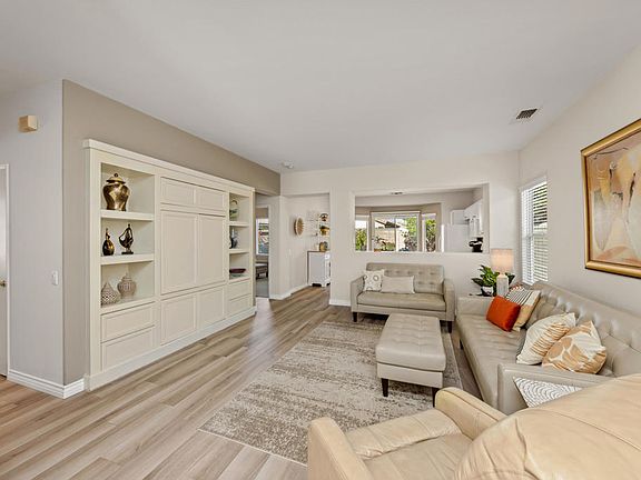 This popular Pasadena Model in Sun City Palm Desert has $20k in recent updates including gorgeous slab quartz counters with full backsplash, new fixtures, a large sink, cabinet doors, neutral interior paint and tile wood grained flooring. This real estate value has 2 bedrooms and 2 baths that are on opposite sides of the home for privacy and comfort. It shows like a model home. The 2 car garage has custom flooring and a newer garage door opener. There are random mountain views from the front and backyard, low-maintenance desert landscaping and an Aluma-wood patio cover. This part of the community has their own private community pool that is only 3 doors away; close enough but not to close. Internet service, the neighborhood pool and the cable tv service are all included with your HOA. You'll save plenty of time returning home from outside the community since you're only seconds away from the resident's only southern gate. You're also close to the secret golf cart & walker's access gate to the Stater Bros grocery market, restaurants, banks and plenty more other shopping!