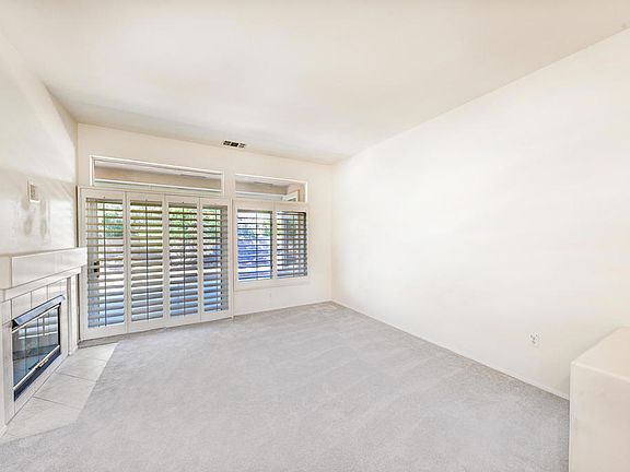 Sun City Palm Desert is a beautiful gate guarded 55+ community of 5,000 homes. This well maintained 1,527 SF (EST.) Orrefors floorplan was built just a short walk from the main clubhouse (3 total) that has an early riser's fitness center, pickleball & tennis courts, two swimming pools, golf pro-shop (2 golf courses), social clubs galore, a restaurant, a kids play ground, a full service post office, a large event banquet room and so much more! This home has special architectural touches like 10 ft. soaring high ceilings, transom windows above regular windows that provide cheerful natural light throughout the home, bay window alcoves in the family room plus the master suite, and an authentic skylight in the master bath. The seller recently added carpet in almost every room, so the buyer has an option to keep the like brand new carpet or remove it in the living room, the family room, the formal dining area and the front entry area to reveal the existing tile. The guest bedroom is already tiled. There are two bedrooms, two baths, plantation shutters, ceiling fans, and a two-way gas fireplace between the living room & family room. The garage has storage and space for 2 cars plus a golf cart. The covered patio has an automatic sun screen that's remote controllable. Termite Report (clear) & Home Inspection Report available for review.