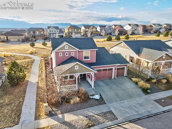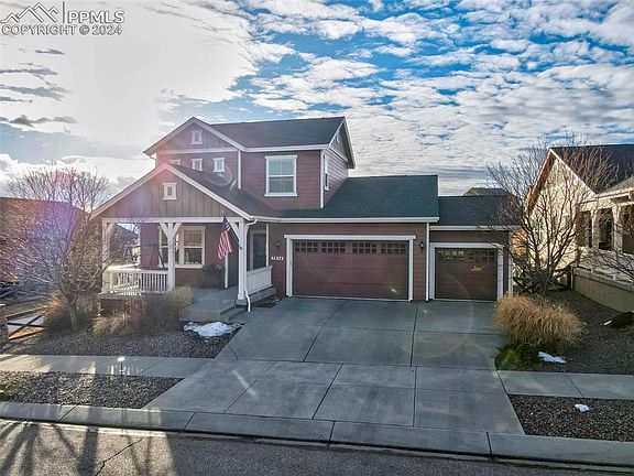 This fully landscaped home has stunning views with no homes directly behind. A walking path bordering one side of the home and the large open space make this property its own slice of heaven. Walking into the home through the front foyer is just as luxurious. With an office space just off the entry its perfect for the remote working individual. The vast main floor opens up into the living room with a cozy fireplace. The living area seamlessly transitions with the kitchen that boasts ample cabinet and counter space with all the necessary appliances. The main floor also features the master bedroom with a walk in closet and five piece ensuite bath including a garden tub. The upper level has bedrooms two and three with full bath. Walking down to the basement the spacious family room is well lit by natural light. Bedrooms four and five with another full bath are just off the family room. This property has it all and is minutes away from schools, hiking/biking trails, pools/parks, pickle ball courts and dog park. The Banning Lewis Ranch community has amenities galore, including neighborhood schools, over 75 acres of parks/trails/open space, tennis courts, basketball court, rock climbing parks, zip-lines, access to pools, splash pad, water park, and dog park. Recreation center houses a fitness center and also regularly hosts classes and events for all ages. In the summer months, catch a neighborhood concert, festival, food trucks, farmers market or enjoy other regular community events.
