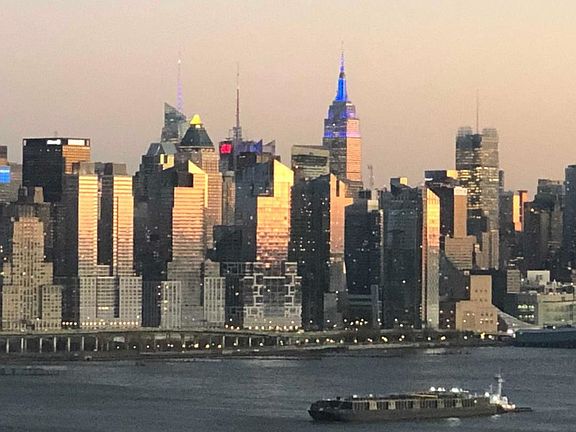 HIGHLY SOUGHT AFTER SOUTHWEST CORNER. 1 BEDROOM 1.5 BATH CONDO. NYC AND HUDSON RIVER VIEWS FROM MIDTOWN TO DOWNTOWN NY FROM YOUR PRIVATE COVERED BALCONY. 180 DEGREES OF EASTERN SOUTHERN AND WESTERN EXPOSURE. WALL OF WINDOWS CAPTURING BREATHTAKING SUNSETS THROUGHOUT APARTMENT. THE 1,060 SQ FT HOME FEATURES A WINDOWED KITCHEN WITH BOSCH APPLIANCES, BUILT IN WINE REFRIGERATOR, DESIGNER CABINETRY, UPDATED BATHROOMS AND A MULTITUDE OF CLOSETS! AMENITIES INCLUDE 24HR CONCIERGE AND SECURITY, OUTDOOR SEASONAL POOL, SAUNA, GYM, LAUNDRY ON EVERY FLOOR, ASSIGNED INDOOR PARKING SPACE, ON SITE MANAGEMENT AND MUCH MORE. THE PARKER IMPERIAL IS A PET FRIENDLY BUILDING ADJACENT TO JAMES BRADDOCK PARK, A 167 ACRE GREEN OASIS, PROVIDING MANY OUTDOOR ACTIVITIES. ENJOY TENNIS, WALKING TRAILS, BALL FIELDS AND CYCLING. FULLY STOCKED LAKE FOR FRESH WATER FISHING AND BRAND NEW "NATURES PARK CAFE" RIGHT ON THE LAKE. NY TRANSIT AND FERRY SHUTTLE SERVICES AT YOUR DOORSTEP, EXCITING SHOPPING AND RESTAURANTS MINUTES AWAY. WELCOME HOME.
