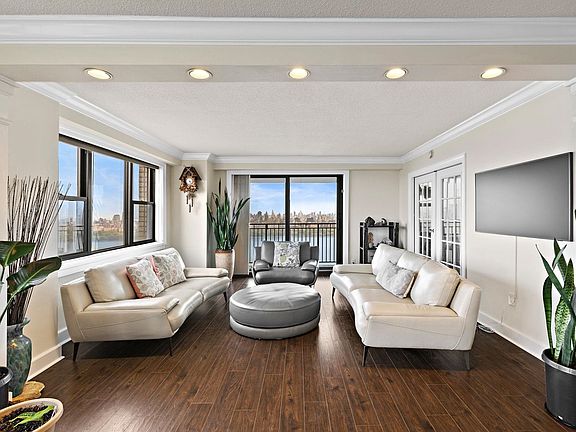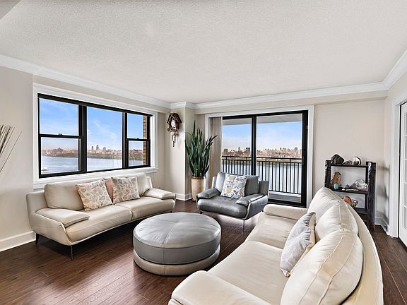 Remarkable 3-bedroom, 2.5-bathroom corner apartment soaring high above the city with breathtaking panoramic views of the NYC skyline and the Hudson River, stretching from the GWB to the Verrazzano Bridge. Features of this condo include a spacious 40+ft living room and dining area, a stunningly upgraded kitchen with Norwegian Blue-Eyed granite countertops and stainless steel appliances, three generous bedrooms, and 2.5 beautifully renovated bathrooms. The master suite includes a luxurious spa bathroom with a Jason spa tub for two, an Italian marble vanity with double sinks, a shower, and a cedar walk-in closet. Throughout the apartment, you'll find ample closet space, hardwood floors, handcrafted wainscoting in the elegant entry foyer, crown moldings, solid oak doors, all illuminated by quality lighting. An expansive covered balcony offers your own personal outdoor retreat with sweeping city views. This is a truly exquisite home showcasing unparalleled views and craftsmanship in every detail, only fully appreciated in person. Experience Parker Imperial - a premier, full-service building featuring: 24hr concierge, on-site maintenance, high-speed elevators, outdoor pool, sundeck, gym. Transportation to NYC at the front door and waterfront dining, shopping and entertainment all within a mile. Situated on the SE corner of the 167 acre JJ Braddock Park where you will find plenty for your enjoyment including walking/running trails, dog runs, a vast lake, farmers markets, playgrounds with water play, and over 45 sporting areas like tennis, handball, basketball, baseball, football and more.