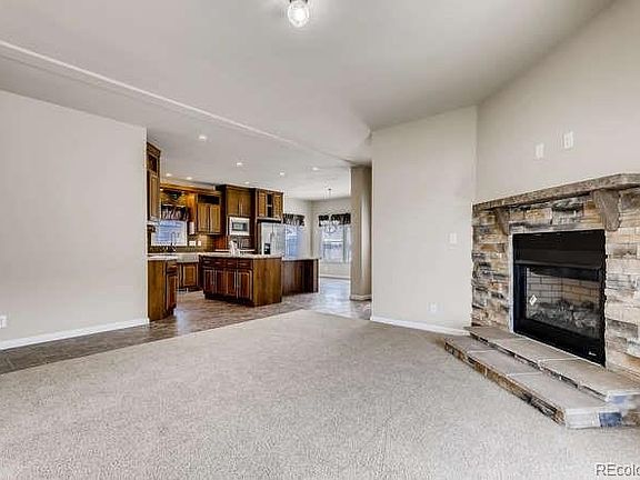 Mount Evans floor plan with large island in the kitchen, stainless steel kitchen appliances, stainless steel farm sink in kitchen, pot filler above electric cook top, gas fireplace in living room, large shower in master bath with walk in master closet, home comes with central air, fully landscaped front/back, is in a cul-de-sac facing South.