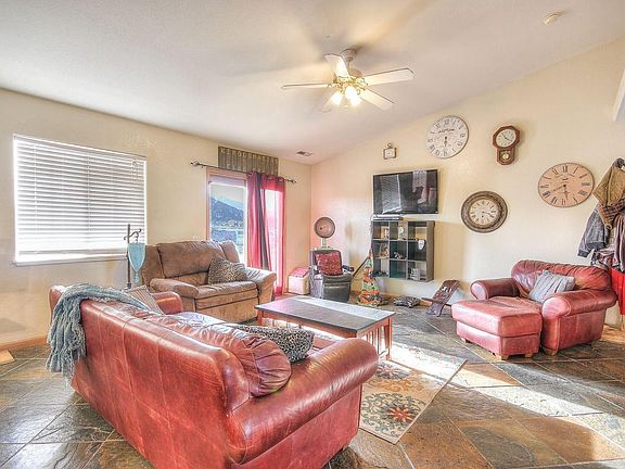 This spacious 3 bedroom home is surrounded by breathtaking views of the mountains! Step into a split floor plan, single level home with slate tile throughout, new carpet in all of the bedrooms, stainless steel appliances, newer water heater, new garage door, oversized shed, as well as a new wide front door. This is a great floor plan, private master with bath and a two car garage. Come relax in this quiet rural setting and enjoy some amazing views!