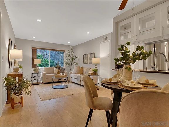 Bright and Beautiful Two-Bedroom/Two-Bathroom single level condo with a large and private patio. 2 Pets allowed. Located between all of the best features in San Carlos - Mission Trails, Cowles Mountain, Mission Trails Golf Course, and Lake Murray. Enjoy some of the best hiking trails in San Diego and then come home to the Hot Tub and Sauna, all while being only 20min from the Beach. The home itself has Newer Flooring, Granite Countertops, Dual-Pane Efficient Windows/Patio Slider, LED Recessed Lighting, Heating/AC, Stainless Steel appliances, and pass through kitchen cabinets. You'll also have 1 garage space with extra room for storage and 1 non-garage space. Community Washer/Dryer but other units have installed W/D in their unit so this might be a possibility for a Buyer as well. Highly Rated Schools. Welcome Home.