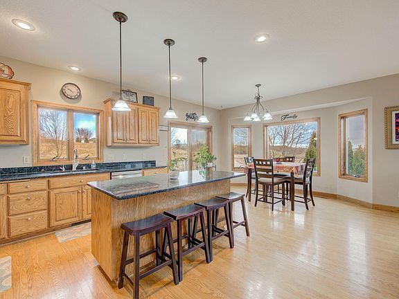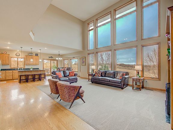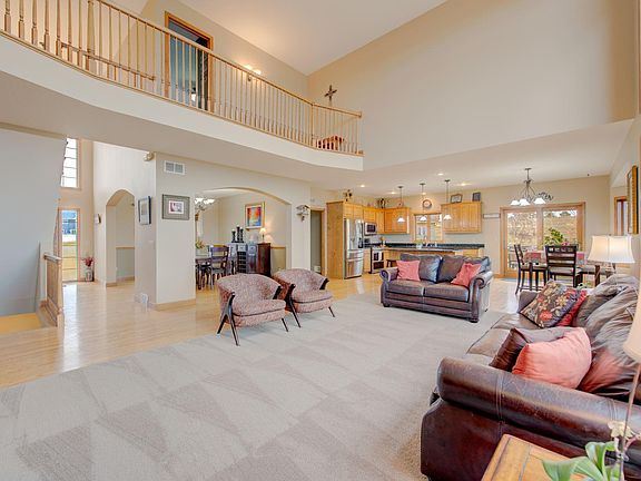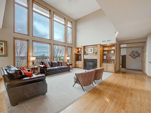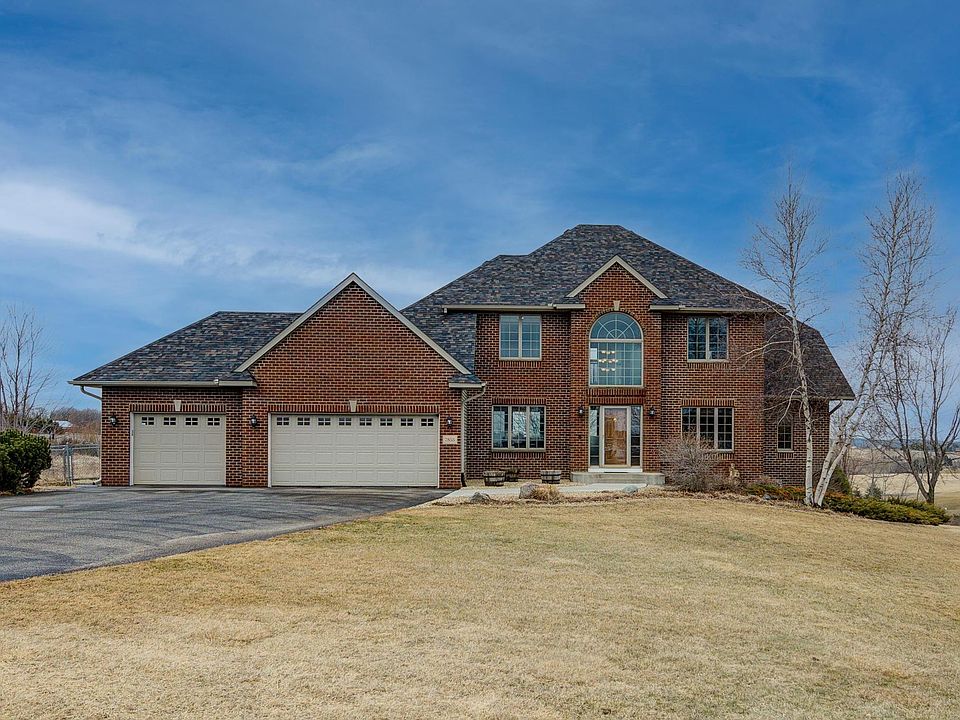 Impeccable condition throughout this custom built 2-story on a 4.3-acre lot w/ excellent views! An entertainer's dream featuring formal & informal spaces both inside & out! The sun filled main level features an open concept layout w/ 2-story great room, 18 ft ceilings, arched entries, wood flooring, executive style office, gourmet kitchen complete w/ new stainless-steel appliances, & luxurious owners suite w/ completely remodeled bath. Upper level features an open stairway overlooking great room, 3 spacious bedrooms & full bath. Walkout LL offers extra room for entertaining w/ new vinyl plank flooring throughout the large family room, billiards space, & 5th bedroom. Enjoy loads of privacy, abundant wildlife & panoramic views from the maintenance free deck or expansive patio, plus fire pit & hot tub for outdoor fun & relaxation!! Dont miss the detached heated & insulated 3-car garage w/ space for workshop & all your toys. Peaceful country living minutes from shopping & entertainment.