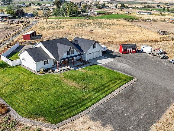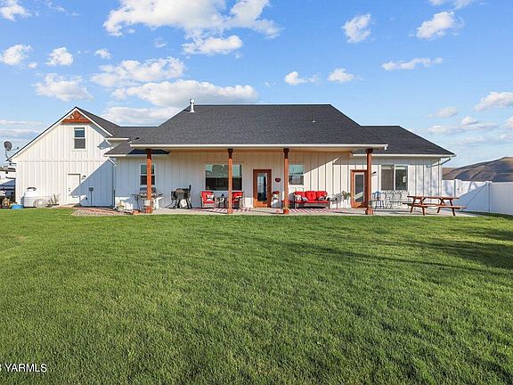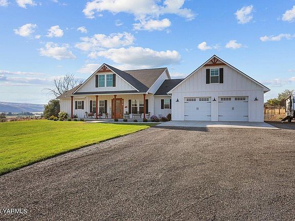 IMMACULATE 2 year old CUSTOM Dream Home on 2.17 acres with a beautiful view. The finest interior finishes include quartz counters in kitchen and bathrooms, 10 ft. ceilings and vaulted in great room, kitchen, dining rm. and 2nd BD, LVP flooring on main level, 4 x 9 kitchen island in gourmet kitchen with walk-in corner pantry, solid knotty alder cabinets and doors on main level, large primary BD with double sinks and walk in shower with seat in primary bath and a huge walk-in closet. Walk-in closet in 2nd BD on main floor too. 3rd BD is upstairs with a large bonus room. Tons of cabinets and storage galore! Front and back covered porches each have knotty pine ceilings. Propane barbecue hookup on back porch. Vinyl fencing on west side, Large hickory shed, tons of parking, irrigation, 12 minutes from Selah and 12 minutes from Naches! Great location. Seller is a licensed realtor in WA State. Additional adjoining 2 acre parcel (181404-13403) available with irrigation and large horse lean too - completely fenced for $55,000.
