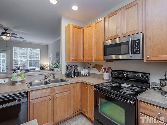Move in ready in Brier Creek! Close to all things fabulous - I-40, 540, RTP, RDU, Brier Creek Commons Shopping & Dining. Enjoy open floor plan, corner gas fireplace, updated lighting, ceiling fans. Kitchen with 42" maple cabinets, black appliances including side by side refrigerator. Vaulted master with adult height bath vanity, garden tub & walk in closet. Huge secondary bedroom w/ private bath. Private back patio & storage closet! Hoa dues are low & include pool & clubhouse!