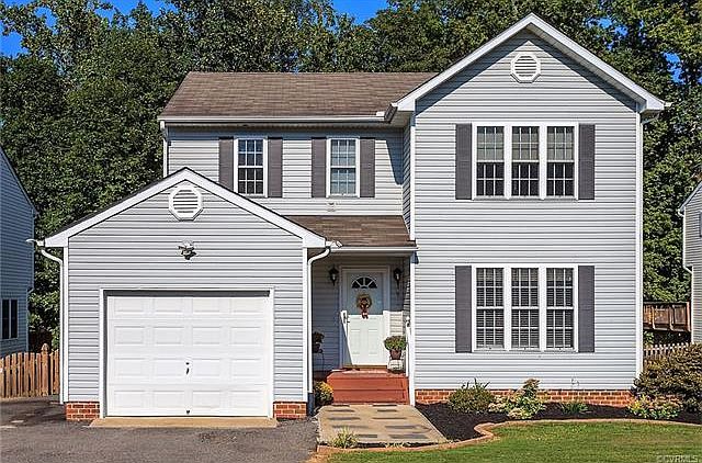 Come check out this move-in ready 3 bedroom, 2.5 bath 2-Story Colonial Home with attached garage conveniently located in the Ashbrook Subdivision of Chesterfield right off Rt 360/Hull St. close to shopping, schools, and restaurants. This home features a formal entryway foyer with crown molding and bead-board ceiling and beautiful updated wood laminate floors on the first level. The eat-in kitchen is very spacious and open to breakfast nook and eye shot of the dining and living room with gas fireplace for a great layout. Upstairs features a large master bedroom with two step-in closets, en-suite bathroom with double vanity, plus laundry and two additional bedrooms. Fully fenced backyard with large, grassy area, mature trees in rear to provide shade and privacy. Attached single car garage and double wide, paved driveway.