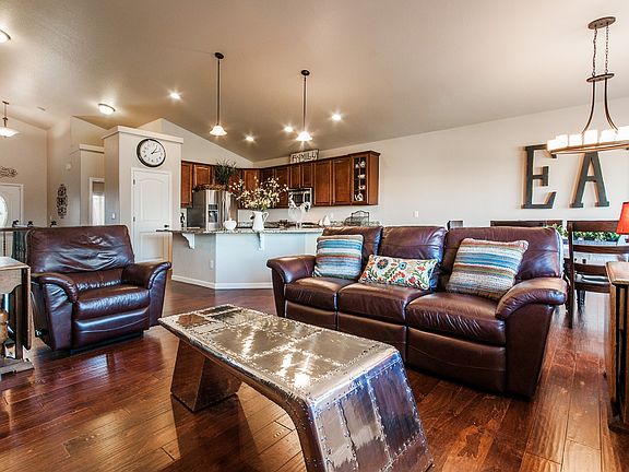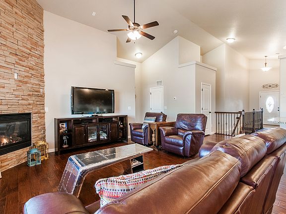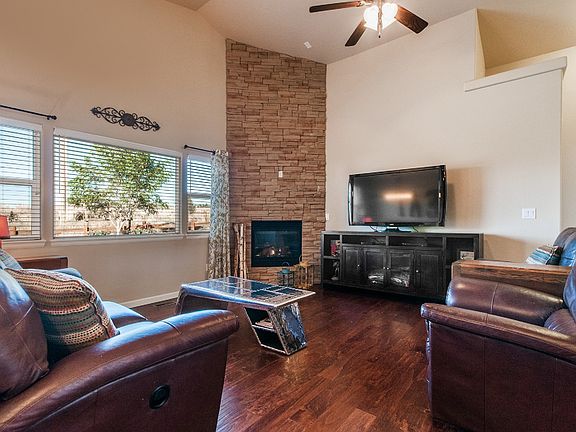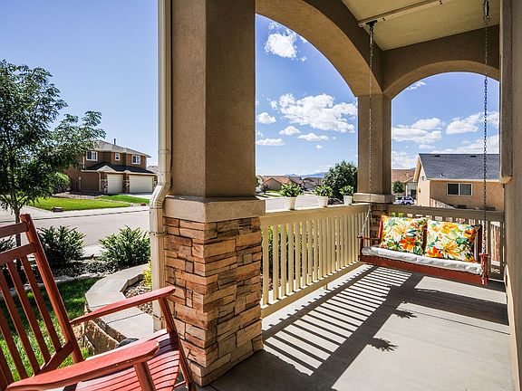 Gorgeous and immaculate 4 bed, 3 bath, stucco ranch home with covered front porch, Central AC and an attached oversized, 3-car garage with a workshop. Peace of Mind Certified Home. Roof inspected! HVAC certified! Home inspection done! Home repairs done! Home Warranty included! Home is on a huge cul-de-sac lot that backs to an open space and has mountain views. The main level has vaulted ceilings, an open floor plan, and hand-scraped wood floors throughout the living areas. The living room has a gas fireplace that is rocked to the roof. The dining area walks out to the partially-covered patio that has grill connections. The kitchen has granite counters, a large island, stainless steel appliances, wine fridge and a pantry. The master suite has a vaulted ceiling, walk-in closet and an adjoining 5-piece bath. The master walks-out to the patio. The 5-piece master bath has granite counters, ceramic tile, dual vanity, a soaking tub and a stand-alone shower. The enormous basement family room has 9' ceilings and a built-in entertainment nook. There are also 2 bedrooms, a full bath and a 10' by 14' storage space in the basement. The backyard is fully-fenced and landscaped. No rear neighbors! The home is close to walking/running trails, parks, schools, and Fort Carson. Quiet neighborhood with very friendly neighbors. Don't miss out, make this your home today!