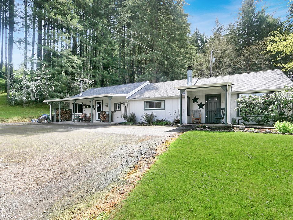 Great little home in the country, private, paved circular driveway with gated entry. Beautiful custom tile through kitchen, bathroom and mud room is a show stopper. Large storage room off the kitchen with nice loft, fireplace and lots of windows. This home is great for entertaining in or out with a covered BBQ area, green house, gorgeous garden & potting shed. Property also has a barn for storage or your little animals.