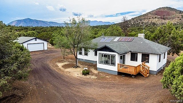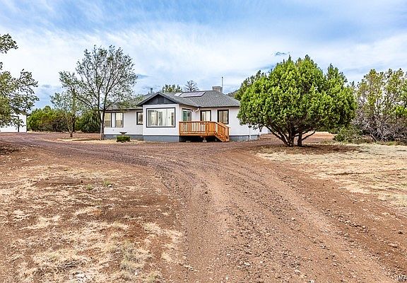 Welcome to your Homestead Dream! This property offers both style, comfort, peace, & is completely off-grid! It is self sufficient with owned solar system & panels. With over 5 acres of wildlife in your backyard, you can let your thoughts & creative side run free. As you walk into the home, you will be welcomed into the family room, with brand new paint, laminate flooring throughout, & a retro pellet stove to keep you warm through the those cold winter days! The kitchen boasts a modern farmhouse vibe, with brand new quartz countertops, new stainless steel appliances, & new sink. Flagstaff is by far Arizona s prime winter location also offering the best summer weather! Location is superb, with property being 5 minutes away from main road & shopping center. This lovely home also has a detached garage and a shed that could be multifunctional! Although intentionally designed, the property still offers much room for multiple additions, buyer has opportunities galore. Come see this gem for yourself!!