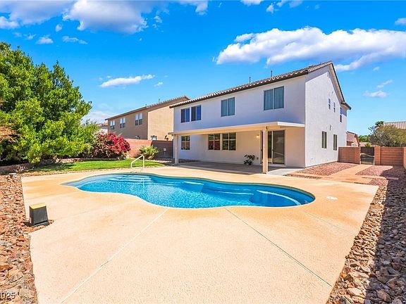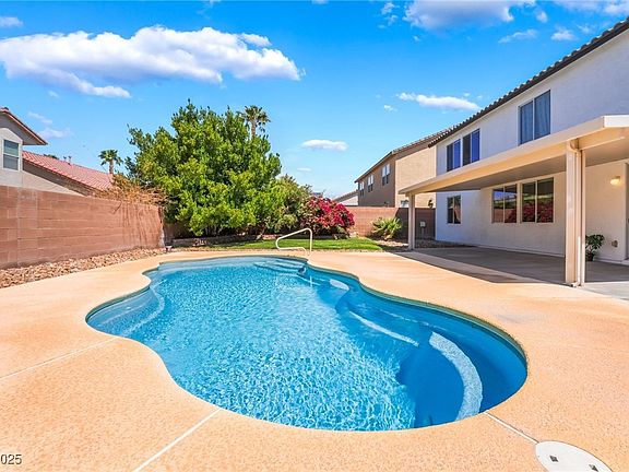 Welcome to this beautifully updated 5-bed home in the sought-after Iron Mountain Ranch community! Pride of ownership! Double-door entry opens to formal living/dining, downstairs bed & den—ideal for office/gym. The spacious kitchen boasts new, stunning marble countertops, SS appliances, & freshly painted cabinets. Upstairs features a spacious loft (perfect for movie nights), oversized primary suite w/ 2 walk-in closets, dual sinks, a tub & shower. This home presents a freshly painted exterior, new A/C, new pool pump & new carpet in living room. Step outside to an entertainer’s dream w/ a covered patio & large private pool—you can’t build pools this size anymore! Nestled in the very desirable NW w/ mountain views, 30min from Mt. Charleston & Spring Mountain Rec Area, a block from stables, Bradley Bridle & Teton Trails Parks, & Beltway trails. Close to schools, shopping, Aliante Casino & the 215. Don’t miss the opportunity to call this meticulously maintained, turn-key home yours today!