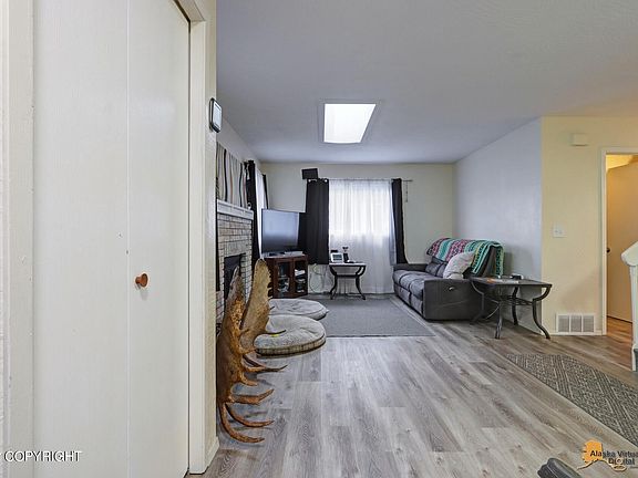 Treat your family to a home of their own. Updated in 2021 with new luxury vinyl plank flooring, new carpet in bedrooms, new interior paint and new stainless steel appliances. Light and bright inside. Warm up in front of the wood burning fireplace on those chilly nights. Two bedrooms downstairs. Full bath and laundry is on main level. Upstairs oversized bedroom with private bath and walk in closet.Additional room great for a home office, home school space, craft room, or extra family room. Large driveway for all your toys. Fully fenced yard perfect for pets. On a quiet cul-de-sac and close to shopping at Dimond Mall, Fred Meyers and Costco.