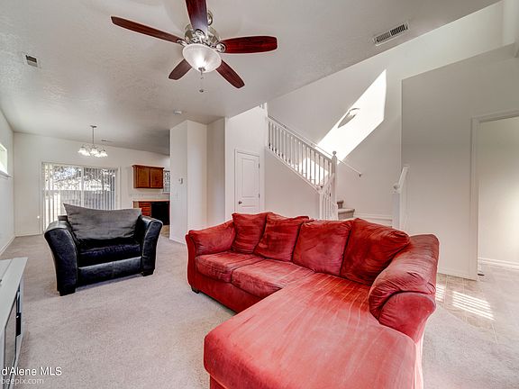 Welcome to 'The Landings' neighborhood, where this delightful 3-bedroom, 3-bathroom home awaits. The spacious living areas seamlessly flow from the living room to the dining area and kitchen, ideal for both everyday living and entertaining. The kitchen features modern appliances and ample counter space, catering to any culinary endeavor. Retreat to the master suite for tranquility with vaulted ceiling, complete with plush carpeting and an en-suite bathroom. All three spacious bedrooms have walk-in closets. With close proximity to a nearby park for outdoor recreation and just a 9-minute drive to Hayden Lake, as well as being only 15 minutes from downtown Coeur d'Alene, this home offers the perfect blend of suburban serenity and urban convenience.