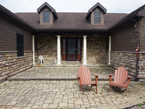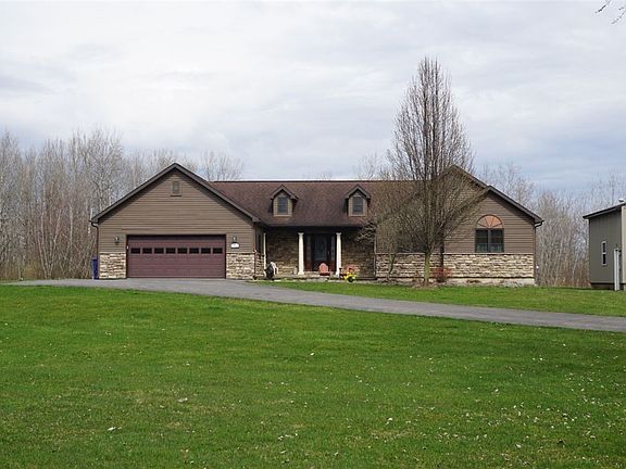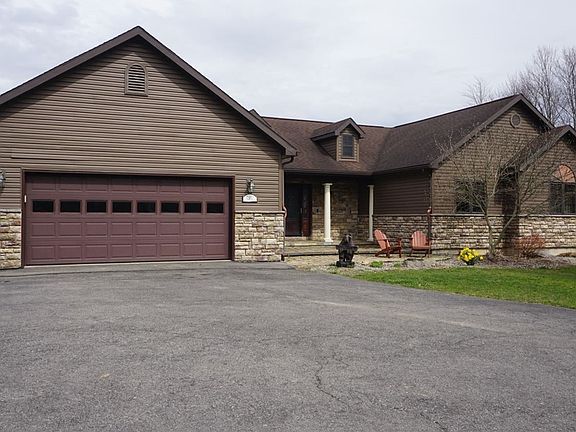 Multiple offers received. Deadline is 5:00 4/22. Stunning Custom Ranch on 2.6 manicured acres w/ pond! Spacious, ranch home was made for entertaining w/ high-end finishes & maple hardwoods thru out the open floor plan. Spacious foyer opens to welcoming family & dining rooms w/ architectural columns & extensive trim. Enjoy morning coffee in the sunny Keeping Room w/ a stunning vaulted wood ceiling & soaring river rock gas fireplace. Custom kitchen features SS appliances, JennAire cooktop, cherry cabinets, granite counters & cozy breakfast bar. Glass slider leads to the composite deck & Jacuzzi hot tub. Huge closets offer plenty of storage. Relax in the oversized Primary w/custom WIC, ensuite bath w/ double sinks, granite, glass shower & Jacuzzi tub. 2 additional generous bedrooms & main bath w/granite counter. Convenient updated powder room w/wood tile floors, floating shelves & shaker vanity. Laundry room w/shaker cabinets, butcher block counters, custom dog supplies cabinet and drying rack. Finished lower level offers additional 2200 sf living space w/polished concrete floor, media area, full bar & new LED lights throughout. Storage & utility room. 25x25 pole barn.