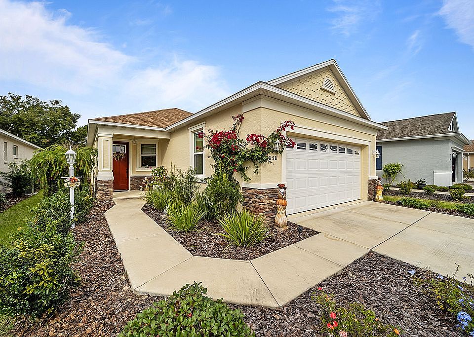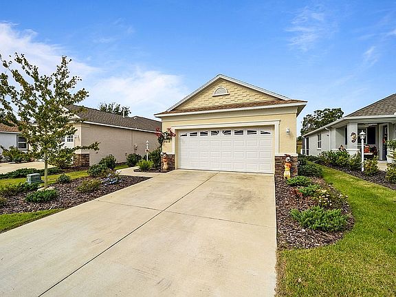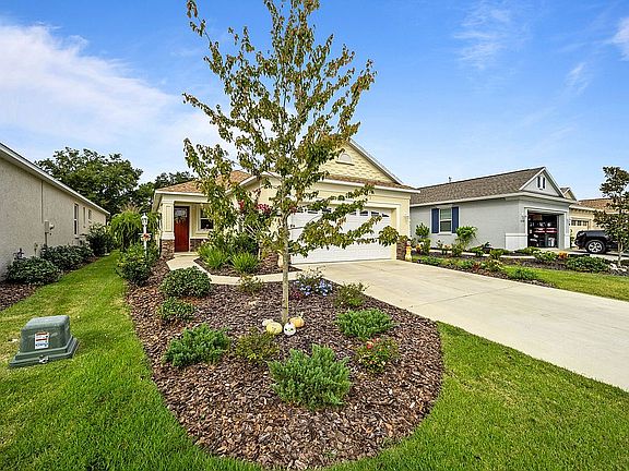 In the center of Horse Capital of the World, Ocala, FL, This home is located in a 55+ Active Adult community. You will find this comfortable 2 year old immaculate 2BR / 2Bath / 2 Car, Cottage Series – Oren Floor plan is one of the most sought out floorplans. 1343 sqft. Living space, plus 118 sqft Lani, garage 489 sqft covered entry 64 sqft. Built by On Top of the World. The exterior of home has culture stone accents with trim detail on front entry column and painted shutters in rear of the home. It has water irrigation, two water outdoor water facets. This is a comfortable spacious open floorplan with 9 ft ceiling, crown molding in Living Room, Kitchen and Master Bedroom, Trim molding around Windows, a special Barn Door feature to close off 2BR/2Bath for guest privacy. Central air and heat. The Kitchen is fully equipped with upgrade GE stainless steel appliances, GE Profile series Refrigerator, 5 burner gas stove, microwave and dishwasher with steel inside to reduce noise level. The cream color kitchen cabinets has one glass door to showcase special items. The flooring is easy to care for mfg wood composite planks. The Bedrooms have upgraded carpet and padding. All neutral colors. The Master Bedroom has a huge “L” shape walk-in closet. The home complete with smart light technology, lots of electrical outlets, and outlet plugs for cell and cable line equipment. Has gas water heater and stove. Electric for washer and dryer. There are four (4) ceiling fans with lights total (Lanai, Bedrooms and Living Room) Garage is 23 ft deep and has 2 remote garage door openers. Located in Indigo East semi-gated community… noted for the best neighbors one could ask for. There are three entrances into the community with camera security. Community has two (2) pools, clubhouse and 2 fitness rooms, walking trails and Dog Park, Is within short walking distance to church, grocery, banks, parks and entertainment / restaurants and Golf courses Only 15 minutes from the new World Equestrian Center. Home is not for lease -- purchase only. Seller is flexible moving date by February. Home is shown by appointment only. Owner works from home so available to show at a moment’s notice, but welcome a call in advance to tour home. Realtor 2% must accompany buyers. Welcome your questions and for more information, call Stella (859) 468-2202.