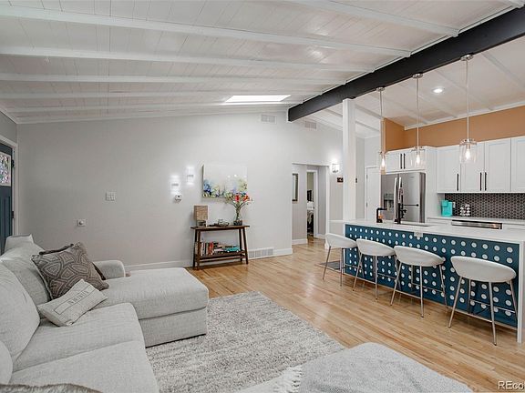 Charm abounds in this stunning mid-century modern interior. The home is the perfect blend of cozy and airy with an abundance of natural light from the vaulted ceilings and open concept. As you step inside, you'll be greeted by a beautifully updated interior that combines modern style and classic charm with a crisp white kitchen and gleaming original hardwood floors. The heart of the home is the stunningly remodeled kitchen that is complete with stainless appliances and large island with waterfall stone countertop. At the rear of the house is a sizable laundry room/mudroom with endless potential for built ins and additional food storage. The main level also features three bedrooms and a full shared bathroom. The exterior of the property boasts a sizable rear covered patio for Colorado's beloved indoor/outdoor living, as well as a detached shed, an oversized pass-through carport, a two car detached garage and ample backyard privacy. Situated close to employment centers in addition to walking distance from the Irving Street Library, the Westminster Arts District, the MAC Recreation Center, and the Colorado Stem School. With easy access to US 36 and I70 and halfway between Denver and Boulder, this is an incredible location.