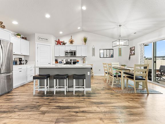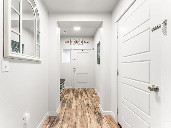 Discover a newer home that offers all the perks without the usual hassles & expenses of new builds! Situated on a desirable corner lot, this beautifully upgraded single-story home features a spacious covered patio, RV parking with easy access through RV gates, & a rock bed RV driveway. The fully landscaped yard includes garden boxes on a drip system and a shed. Enjoy full perimeter fencing, sleek upgraded laminate flooring, and added ceiling-mounted storage racks in the expansive 3-car garage, complete with auto openers on both garage doors. Plus, it’s equipped with a Nest thermostat for ultimate comfort. Located just north of the freeway, you'll appreciate the reduced traffic while still being minutes away from shopping, I-84, and Chinden. The thoughtfully designed floorplan boasts an inviting open-concept living area with 9-foot ceilings, while the bedrooms are tucked away for privacy. A charming inset in the living room wall is the perfect spot for your coffee bar. This home is an exceptional opportunity!
