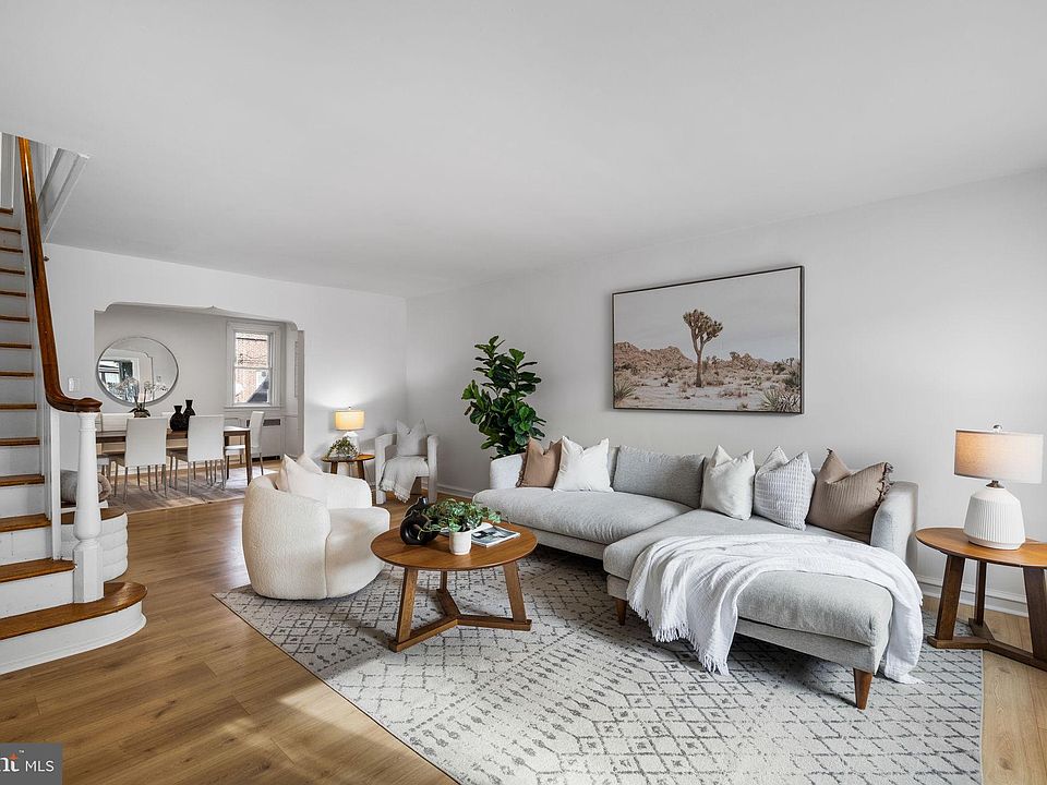 Introducing 7859 Michener Avenue! Situated on a charming block, this charming and recently updated rowhome impresses on every level. Enter to an open and spacious living room with restored wood banister and staircase, oversized bay window, and preserved vestibule. The main level flows seamlessly from living room, through dining room, and into modern kitchen at the back of the home. Upstairs are three spacious bedrooms and a charmingly preserved full bathroom. The home presents at a southwestern exposure which brings natural light into the front primary bedroom (and the entire main level via that bay window). In the basement, you'll find laundry, garage, and a partially finished den (which the previous owner used for a pool table). Fenced back patio for parking. Convenient and accessible. Schedule your private showing today!