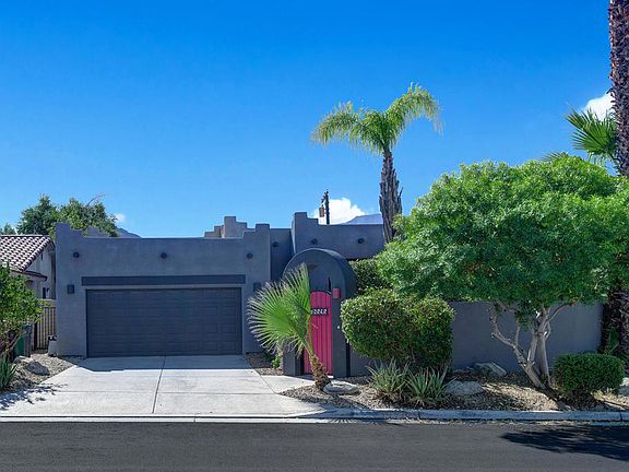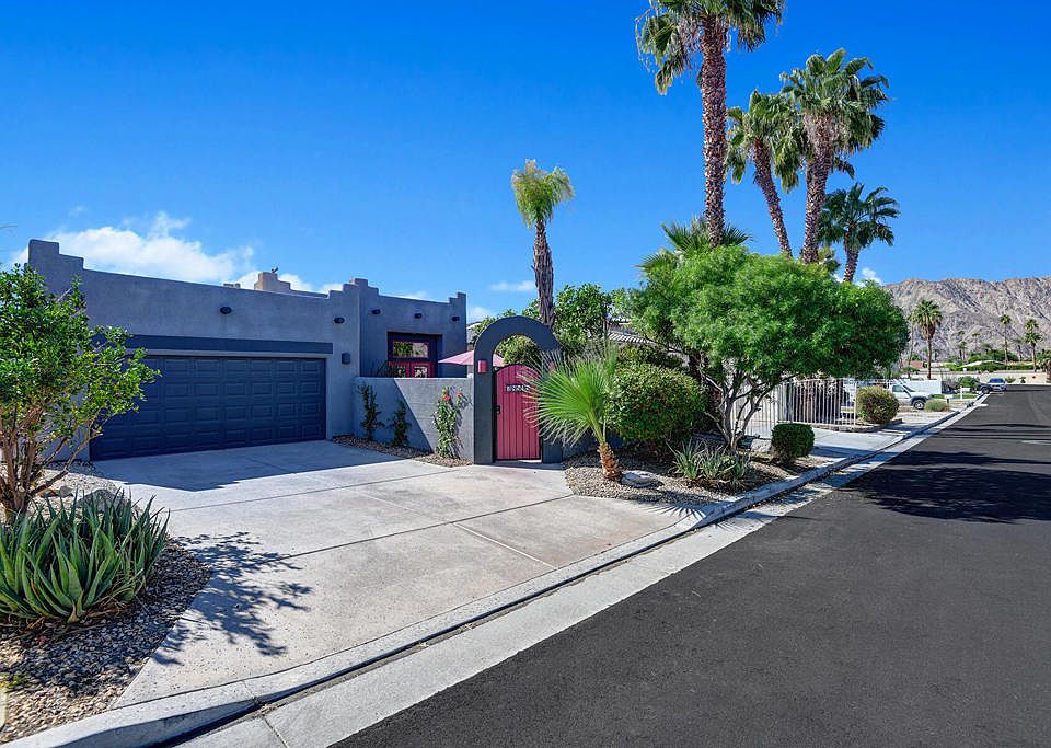 The absolute best-value ''Santa Fe'' style home in La Quinta, with sweeping, panoramic, south-facing views of the Santa Rosa mountains, completely unobstructed by neighbors! And if the view doesn't have your jaw-dropping, wait 'til you fall in love with the charm, be it the wood beams in the kitchen, or the beautifully landscaped entryway courtyard. Surrounded by mature citrus trees that cast ample shade from the afternoon heat, it's a tranquil environment to host friends and family for an al fresco dining experience to remember. The home has three spacious bedrooms, with a slider from the Primary Suite giving direct access to the pool and hot tub, with West-facing views of the mountains. The seller also built an extended back patio to provide sufficient lounging space to soak up all the south-facing sunlight you could possibly want! The home is priced to sell, so see it quickly and make your best offer!