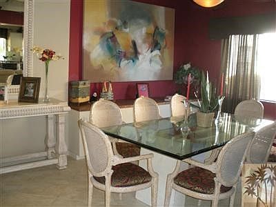 WOW Beautifully furnished gated condo in Indian Wells. perfect location. Walk to tennis stadium and close to Polo fields . golf at IW resort courses for $35 and $50 Use Hyatt gym and 20% off and many more IW resident perks. Gourmet granite top kitchen with wet bar and wine cooler. Fabulous South mountains views and pool is just steps away like having your own pool. Wonderful floor plan with great room, lg tile thru out but 2 bedrooms. Gated front patio for pets. golf cart excess to IWCC Nice separation of 3 suites great south facing patio close to everything walk to market and Starbucks. On Imperial electric could ask for more. Also available for lease starting 5/3 month to month