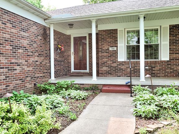 This custom built brick ranch is situated on a wooded, landscaped lot. Open floor plan with gas fireplace in living room. Large kitchen offers a large eating area with built in shelving and views of the beautiful yard. Large utility room with separate sink. Master suite with walk in closet, full bath, & corner windows to enjoy the back yard views. Sun Porch steps out to patio with gas hook up for grill. 27 x 25 attached garage offers lots of storage.