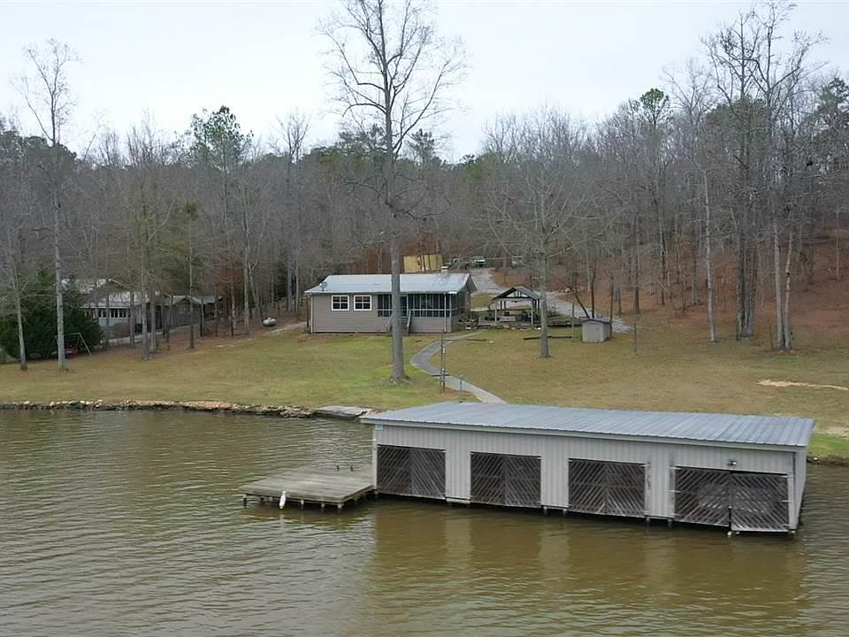 MAGNIFICENT SUNRISES AND SUNSETS, plus Level Acreage sized lot on Lake Mitchell are hard to find. Situated at the mouth of Cargile you will find this maintenance-free home with 4-stall enclosed boathouse waiting for you! Level at the waters edge, you will find that this is very peaceful and just across from Goat Island. Enjoy the fireworks display here with a birds eye view of all the festivities. The boat traffic here near Goat Island is calmer than most areas on the lake. The front covered and screened porch will give you plenty of extended room to entertain. Inside you will find hardwood flooring, woodburning masonry fireplace in the family room and a split bedroom floor plan. Easy to clean double pane windows will help you see this gorgeous view. Dont wait....see this new listing soon.