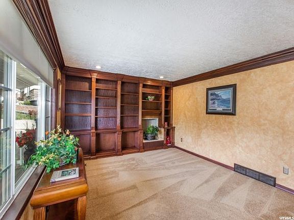 Spacious rambler on Centerville's east bench with views of the mountain and valley. Come see all of the extensive woodwork in this home. Tons of built-ins, crown moulding and closet organizers, updated kitchen with makary cabinets, double oven, solid surface countertops. Spacious master suite that includes an updated master bathroom and three closets. 12x28 deck overlooking the valley. Huge heated garage with 11' ceilings and 10' garage doors, plenty of room for a workshop along with the garage. Solar panels to make your utility bills very inexpensive. Full walkout basement. 15 minutes to downtown and the airport. Easy to show.