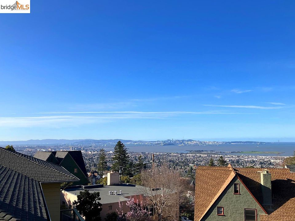 Wonderful 70's contemporary set among the trees with walls of glass opening to views of the Bay, The Bay and Golden Gate Bridges, and across Berkeley to Oakland, Treasure Island and San Francisco. Beautiful Redwood Interior. Only one owner in 53 years. New roof, new skylights, new furnace and hot water heater, new garage door opener, new electric cooktop and fan, sewer lateral compliant, refinished hardwood floors. The home sits beside and overlooks a waterfall along Blackberry Creek. A curved bridge connects the two sides of the rear garden. The lower levels of the house consists of unfinished spaces with high ceilings that can be developed for additional living spaces. The house is on a bus line to downtown Berkeley, and it is approximately 3 blocks to Cragmont Elementary school playground.