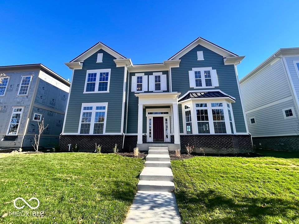 Stunning new home in the heart of Carmel! This home will delight with 3 bedrooms, 2 and a half baths, a two-car 10' ceiling finished garage and an unfinished 9' basement. The spacious main level features 10' ceilings and comes with an abundance of beautiful quartz counterspace throughout and a large quartz kitchen island to gather around with friends and family. This impressive kitchen features white white Aristokraft raised cabinets, white subway backsplash, deluxe kitchen island cabinets, luxury laminate wood flooring in main areas, stainless steel appliances and more! Relax in the gorgeous study on main level! Owner's retreat comes with a refreshing super-shower, tray ceiling and a large closet. Our homes feature 9' and 10' ceilings throughout the entire home! Community pool and a pool house are our top amenities, and you will be within walking distance to the Palladium, Monon Trail, gourmet restaurants, Farmer's Market, Arts and Design District and all that downtown Carmel has to offer! HOA only $90/month!