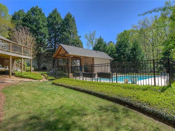 One-level brick home that checks all the boxes: immaculately maintained, fantastic location, amazing floorplan, + an OASIS of a backyard! Large wooded lot means you'll enjoy your new saltwater pool in absolute privacy! Enclosed pool area includes custom redwood/cedar open-rafter pavilion w/ attached half bath. A spacious deck & sunroom offer idyllic views of pool. Large great room features floor-to-ceiling brick FP & soaring vaulted ceiling. Formal living & dining rooms, each w/ hardwoods, vaulted ceilings, & huge windows w/ plantation shutters, flank foyer. Updated kitchen boasts TONS of storage & prep space (any chef's dream!), dual-fuel range, granite, subway tile, undermounted SS sink, & island. Breakfast area offers add'l storage + space for a full-size table & flows into sunroom, which opens to the private master. Master features vaulted ceiling & updated en suite bath w/ double sinks, marble, huge jetted tub, WI tile shower, & WC. Across the home, beds 2 & 3 share a hall bath.