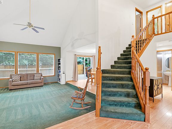 Welcome to this beautifully maintained home nestled in a quiet, established cul-de-sac. The open floor plan features a vaulted living room with a stunning stone wood-burning fireplace, creating a warm and welcoming atmosphere. The spacious kitchen offers stainless steel appliances, a pantry, and a center island. Enjoy the ease of main-level laundry, den and appreciate the extra storage options throughout, including additional space in the garage. Upstairs, you’ll find three generously sized bedrooms filled with natural light. The primary boasts a large walk in closet, soaking tub and walk in shower.Set on a large lot, the yard is a true highlight with a lovely deck, fenced garden area, chicken coop, and extra storage—ideal for anyone who loves outdoor living. Located in a peaceful Estacada cul-de-sac, this home blends comfort, charm, and room to grow.