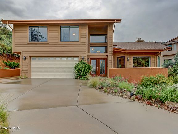 Tucked away on a private lot in Hidden Valley Ranch. Nice Views of Thumb Butte and surrounded by trees with gorgeous lush landscape. This home was built in1994 but updated beautifully. Comfortable living inside, but lovely outdoor living with a large outside deck and a seasonal creek to enjoy nature. Wonderful double glass entry doors open up to tile and wood floors, gas rock fireplace and a great room with tons of natural light. The kitchen has lovely granite, wood cabinets (some with class fronts), walk in pantry, stainless steel appliances and views from the large kitchen window. Spacious master with sliders to the backyard, large bath with separate tub and shower and nice walk in closet. There is also another bedroom or office downstairs and a laundry room.
