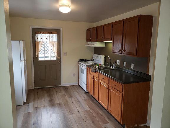 2 bed room house not attached. Living rm kitchen. Includes private yard. and storage shed. Electric stove and refrigerator included. Electric base board heat and electric hot water, tenant pays electric and trash. Landlord pays - sewer , water, lawncare, No smoking. No pets. One year lease . Income must be 3 times rent amount. All showings will require a completed Zillow application.