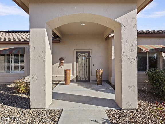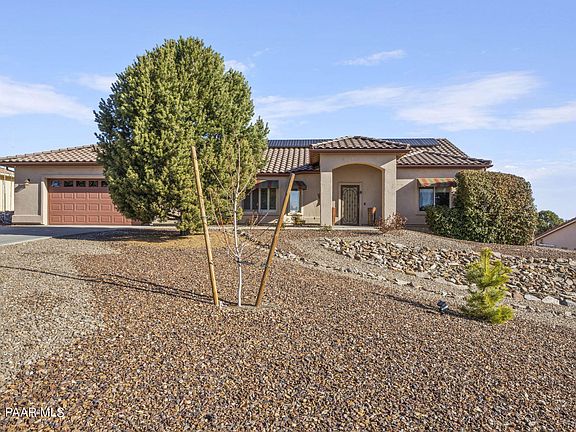 SINGLE LEVEL, VIEWS, IN TOWN, 3 CAR GARAGE, AND A FLAT DRIVEWAY! Located in Pinon Oaks this home features views of the San Francisco Peaks. This remodeled ranch-style home offers privacy on nearly half an acre with OWNED SOLAR for low utility costs. The open floor plan includes a gourmet kitchen with stainless steel appliances, granite countertops, and an oversized island. The great room has a gas fireplace and leads to a flex space. The master suite features heated floors, a walk-in closet, and a spa-like bathroom. The property boasts a large 3 car garage with storage and a workshop, rock and natural landscaping, blue spruce trees, and a drip irrigation system. With significant upgrades including newer windows and water heater, this home combines efficiency and comfort.