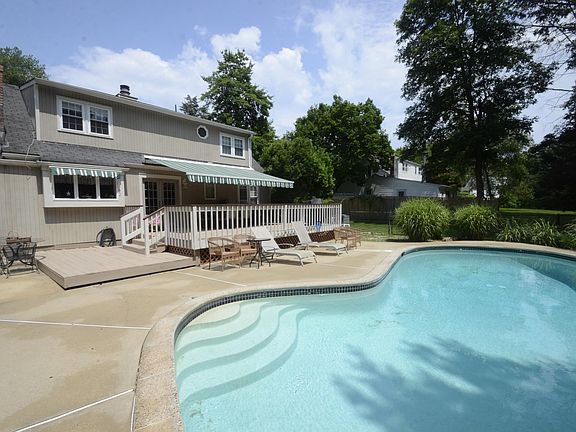 Cape Cod Charm on over an acre with 2-4 car garage. A private rear backdrop of Green Acres sets the stage for the in ground pool, patio, deck with remote controlled, retractable awning-the perfect spot to cool down from the summer heat. The detached studio has heat, plumbing, and 3rd full bathroom and electric-can be used for musicians, artists or additional garage if needed.
