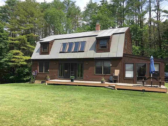 The one that combines privacy as well as convenience. Located near the end of a dead end road, but less than 5 miles to the I-89 Exit 2 interchange. This 3Bed-2Bath well built, one owner home on over 11 acres has been meticulously maintained as well as landscaped. Featuring a large covered porch near the entrance of the home and a huge wood deck with all the southern exposure you could ask for. The gambrel style uses all the available space extremely well, as you will see in it the flow of the entire downstairs. Exposed beams, skylights and cathedral ceiling really give this home a larger open feel. A full bathroom with washer and dryer is accessible thru the walk-in closet of the master bedroom, yes-second floor laundry! A large sunroom off the back of the house is the perfect relaxing spot after working in the garden. A 8x16 utility shed is great for lawn mowers, tools and storage. This quality built home in a quiet spot is a must see!
