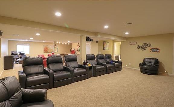 Enjoy the hot tub on the screened in covered deck or entertain in the finished basement. The finished basement includes: $10,000 Theatre System with Sonos Speakers, Full Wet Bar with Builtin Cooler, and many extras. Master bedroom is on first floor on opposite side of additional bedrooms. Features Include: granite counter tops, knock down ceilings, bullnose corners, Stainless steel appliances, hot tub, covered deck, sprinkler system, surround sound system, wet bar, water filtration system, 90% eff furnace