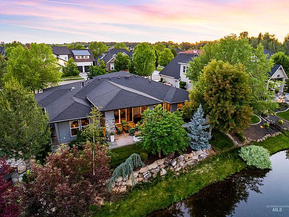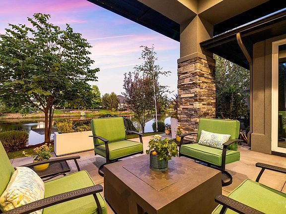A confluence of intentional design and waterfront serenity in coveted Mace River Ranch. This inspired single-level Zac Evans home is bathed in natural light from expansive windows and seamless access points. A sophisticated neutral palette highlights wide-plank flooring flowing through the open living, dining, and kitchen spaces, anchored by gleaming quartz surfaces and a generous island. Dual sliding glass doors extend gatherings to the 22x17 covered patio overlooking the water. The private primary wing offers tranquil views and a spa-like bath with heated tile flooring. The split floor plan features two spacious bedrooms, a guest bath, and a water-view office/flex room. Excellence is evident in every detail, and throughout the community with its pool, clubhouse, scenic walking paths, and reflective waters. Nestled along the Boise River and Greenbelt, just minutes from downtown Eagle. Comfort, elevated by refined indulgence.