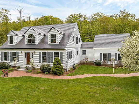 High quality, meticulously maintained home with a secluded 7 acres abutting Surowiec Farm, all within a convenient commuter distance, 2 min to I93. The main cape style 4 bedroom home generously features 2 primary bed ensuites, one on the first floor with a walkout to deck and oversized bathroom with jet tub and walk in shower, his & hers closets. A modern chef's style kitchen, induction cooking, double wall oven, built in microwave, charming maple cabinetry, granite countertops and a solid maple wood center island with seating and additional sink. The eat-in kitchen offers your family and guests a wonderful dining experience near the gas fireplace in the charming living room vaulted ceilings and French doors to the back deck, or choose to have dinner in the formal dining room (currently being used as an additional living area). The 2nd level boasts an additional primary ensuite, an oversized landing overlooking the 1st flr living area, two secondary bedrooms flank the south side of the upper level. The Accessory Dwelling unit semi detached from the main home offers additional possibilities for multigenerational living and/or an elaborate office for a home business. Built in 2021, the unit offers 1 bed, 1 bath, a loft and a full eat in kitchen with modern design. The 2 bay garage with oversized doors is a great size for holding your trucks and toys. Landscaped to perfection and roof is 50 yr metal shingle. This is truly a must see home! OPEN HOUSE Sunday May 21st 10a-12p