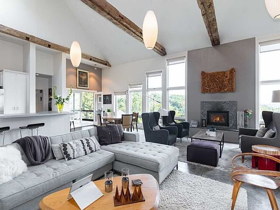 Modern, Sophisticated & Stylish describes this home. Privately located on a hilltop with long eastern views and minutes to the village of Millerton and metro-north. Concrete floors with radiant heat, 21' vaulted ceilings with vintage hand hewn beams, lots of glass, great room with a wood burning fireplace and a fabulous three season porch with a wood stove and view! Three bedrooms all en-suite with beautiful luxury baths. Retreat to outdoor living space with room for dining and entertaining.