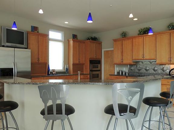 Spectacular Custom built & designed 4bdrm, 3.5bath, Oversized 3car garage ranch w/contemporary flair on ¾ ac. lot in cul-de-sac w/gorgeous inground pool! Vaulted Great Room w/gas fireplace, & wall of windows w/remote shades! Gourmet kitchen w/granite, stainless appliances, dbl ovens & microwave, walkin pantry w/custom shelves. Breakfast room has geometrically designed ceiling! Master suite w/vaulted ceiling fan & window seat. Huge Masterbath w/whirlpool tub, sep. shower, & his/hers custom closets. 2 add'l bdrms on main level. Laundry Room w/sink, closet & ironing area. Composite deck w/stairs leading to patio and pool area. Finished w/o LL with large family room, full bath, 4th bdrm(being used as exercise room). Hunter Douglas blinds and shades throughout, zoned HVAC, pocket doors, sec sys, central vacuum & intercom. Right off Hwy 94/40 and only 5 mins from Chesterfield!