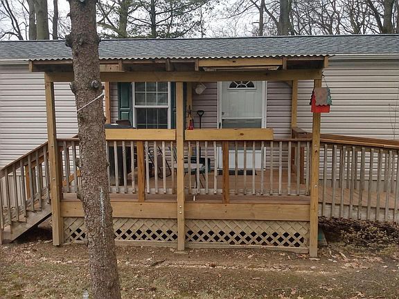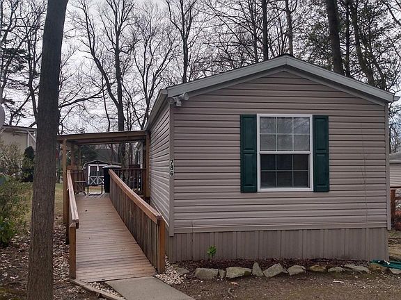 Well maintained & cared for manufactured home with 3 bedrooms & 2 full baths in the Stoneyhill Community. This home offers an open floor plan with living room, eat-in kitchen with gas cooking, laundry & entrance to back yard with an 8 x 12 shed with electric. The main bedroom has a large closet & hall full bath with 2 additional bedrooms & another hall full bath. Covered front porch/deck with ramp, Central Air, Gas Heat, Flooring 2022, New Roof in 2021 with lifetime shingles & transferrable warranty to new buyer & New Hot Water Heater 2024. Lot rent includes sewer & trash. Water is billed on usage. Very Low Taxes & Low Maintenance. Before submitting an offer, Buyer must be approved by the Stoneyhill Community.