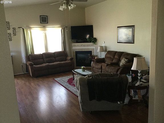This 3 bed 2 bath home is located in established neighborhood. It features a large patio area for BBQ'S, front row seating for fireworks, tool shed and area for a small RV or play set & TUGS.Inside you will find laminate flooring throughout, propane fire place and open floor plan. Don't wait schedule your showing before it's too late